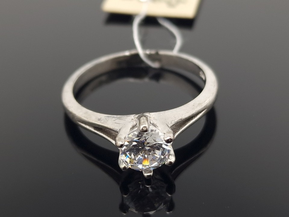Sidabrinis žiedas su balta akute